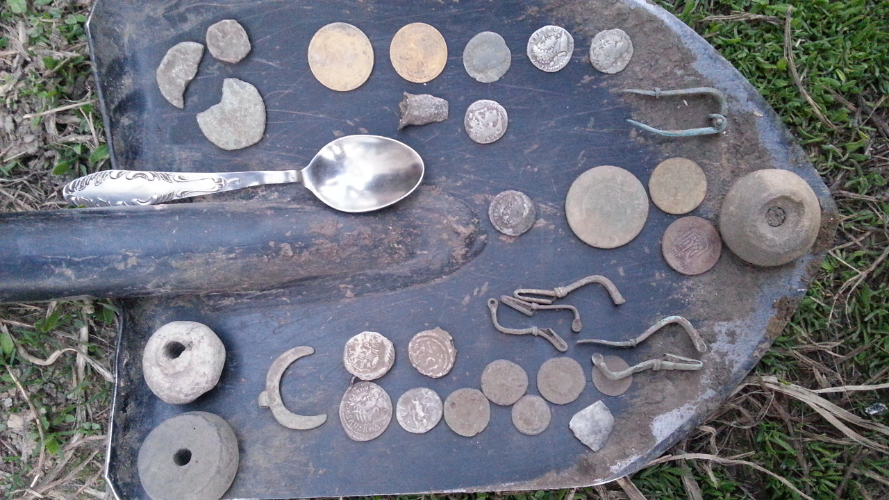 | шел вообщето напротив крепости по полю походить, думал наки будут но кроме коротких наконечников от пуль и шрапнели-нифига,, немного пиницилиновых денариев - но я их не брал,, с нормальным весом в рюкзаке еле волоча ноги пошли обратно к машине ,на подходе к авто первый сигнал медная штуковина (первое фото внизу справа) думал шас хоть по ПМВ попрет , ну хоть пряжечка -ага фигушки!!! и тут такой сигнальчик красивый как от пиницилинового динария и ВОТ,,, поорал я конешно на поле,,,,