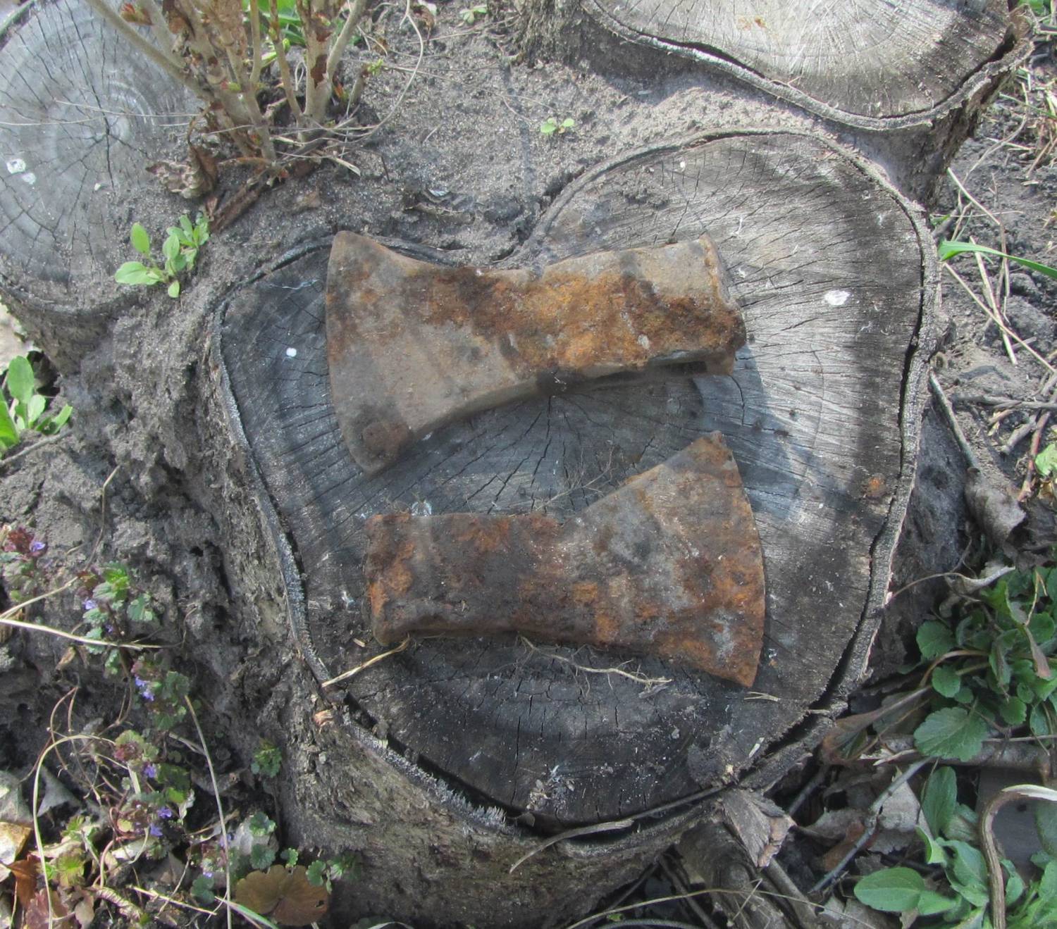 | Тут где-то в находках есть топор, что я нашел давно. http://radiodom.org/forum/7-27-4840-16-1367253010 Ржавчины было 1 см... А эти с хорошей стали видимо более чистое железо или молодые еще..)